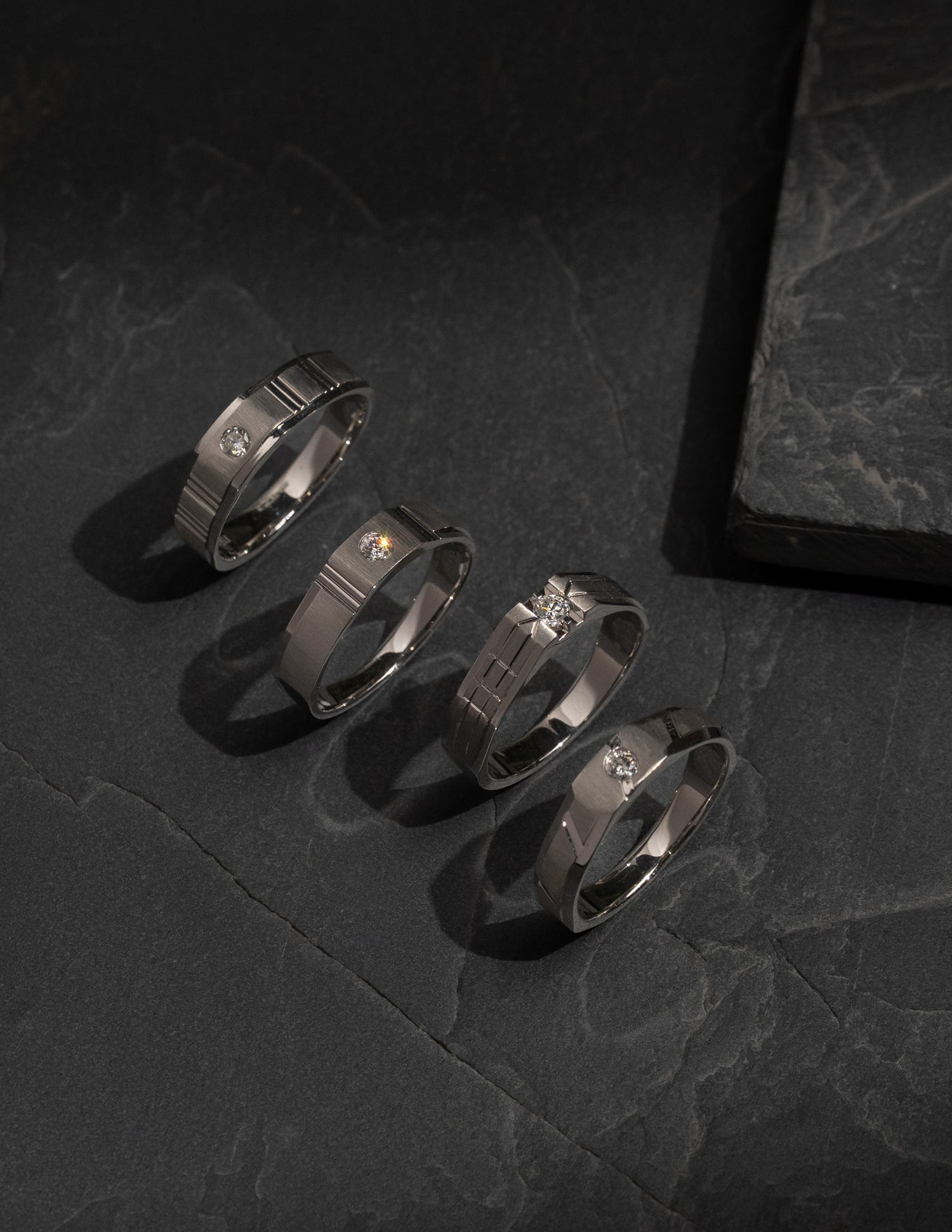 Our men’s engagement bands are crafted for the modern groom — designed...