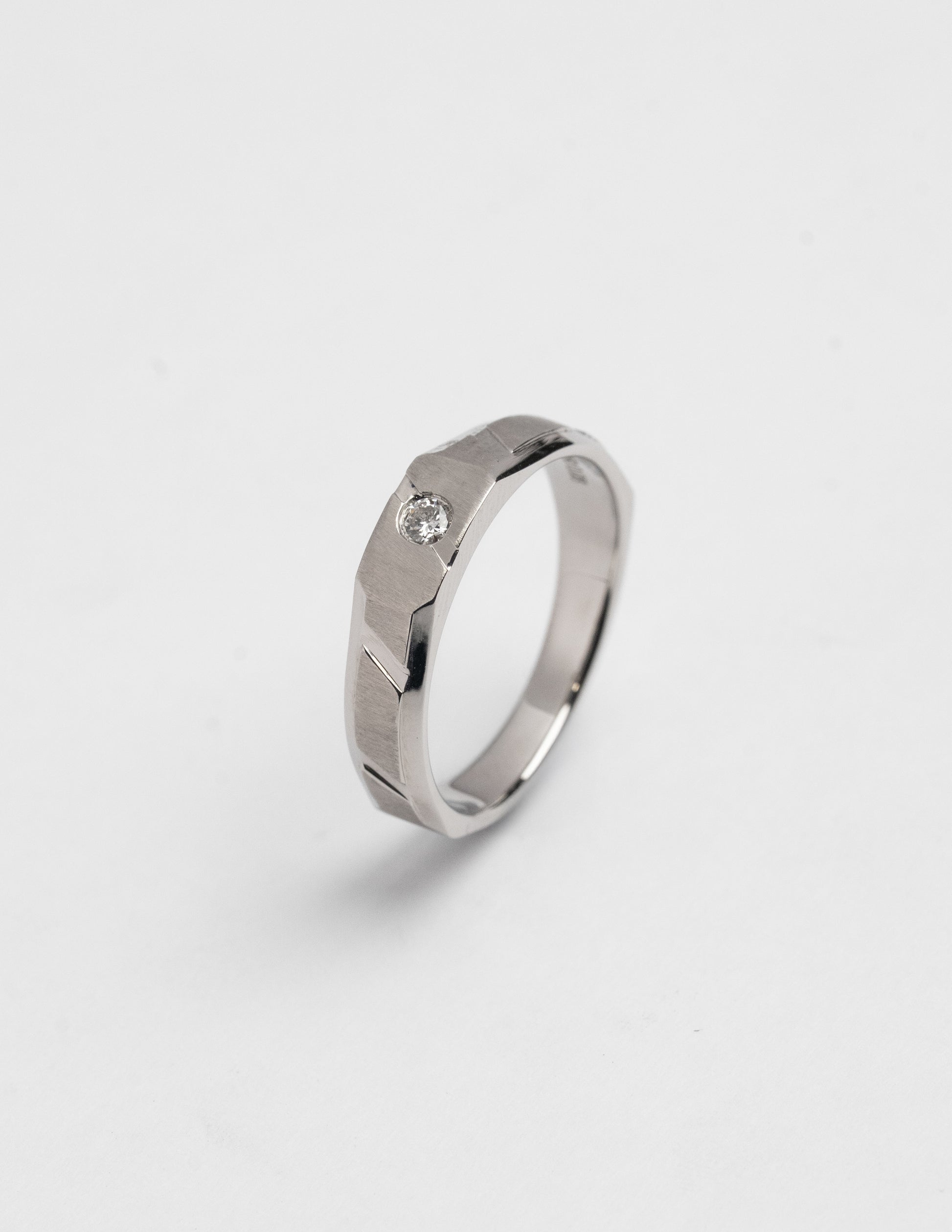 Angular facets meet brushed surface, dimensional and modern, crafted in pure platinum.