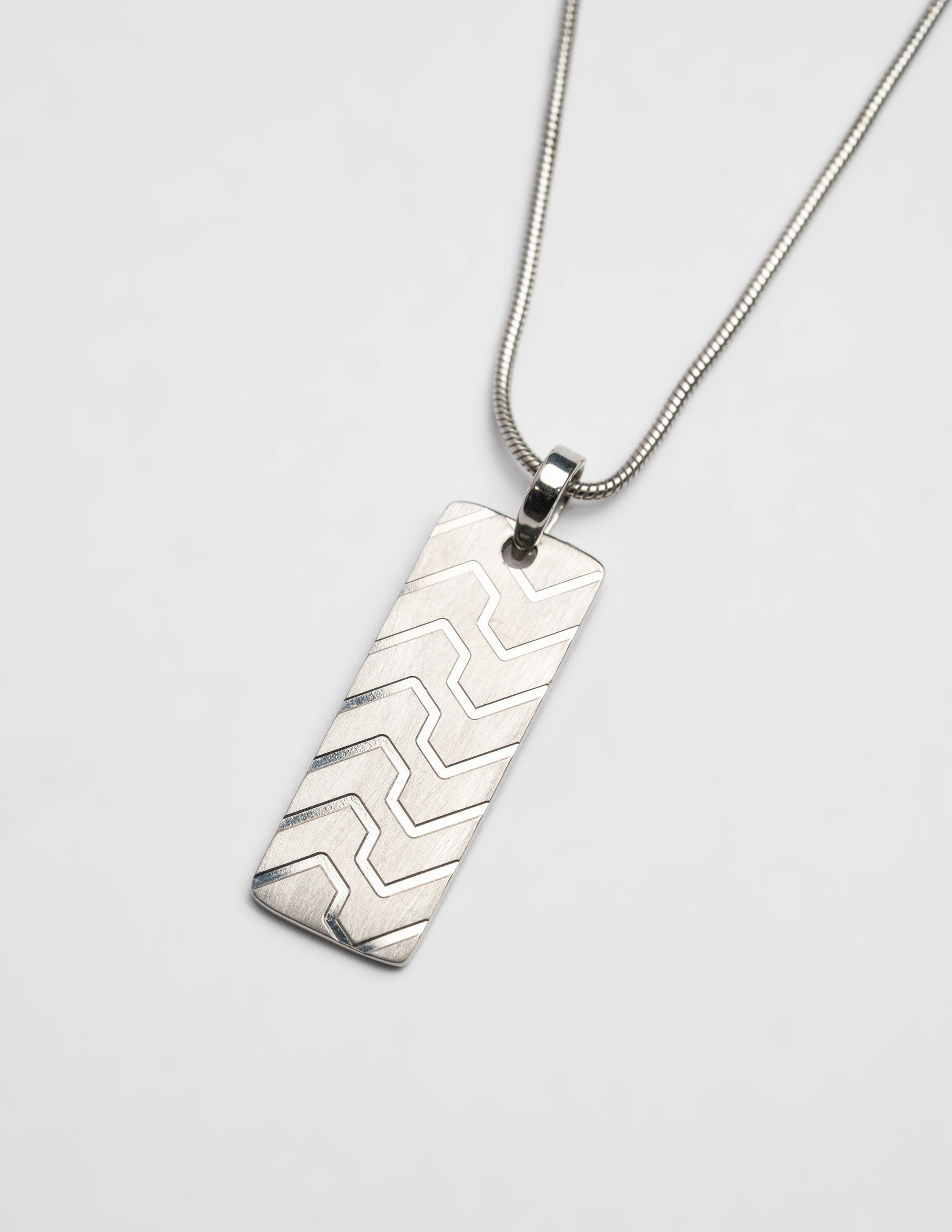 Angular chevrons rise in symmetry, bold yet minimal, crafted in pure platinum.