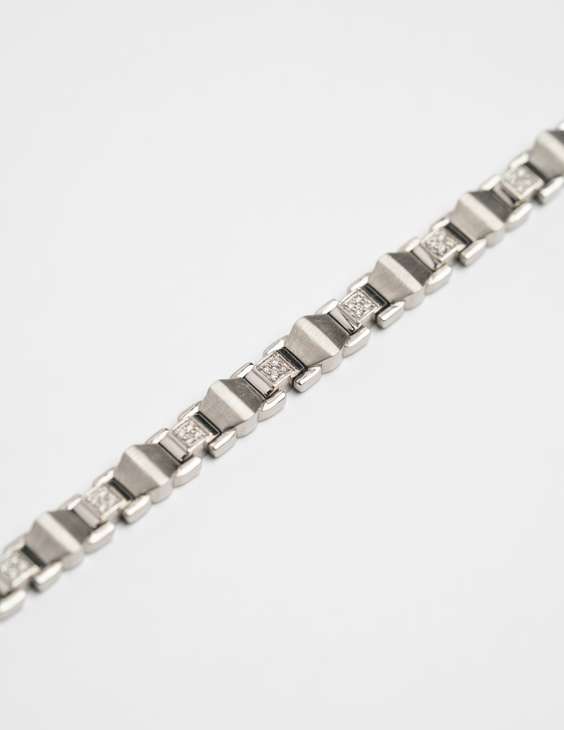 Precision-engineered box links alternating polish and texture, architectural in form, crafted in rare platinum.