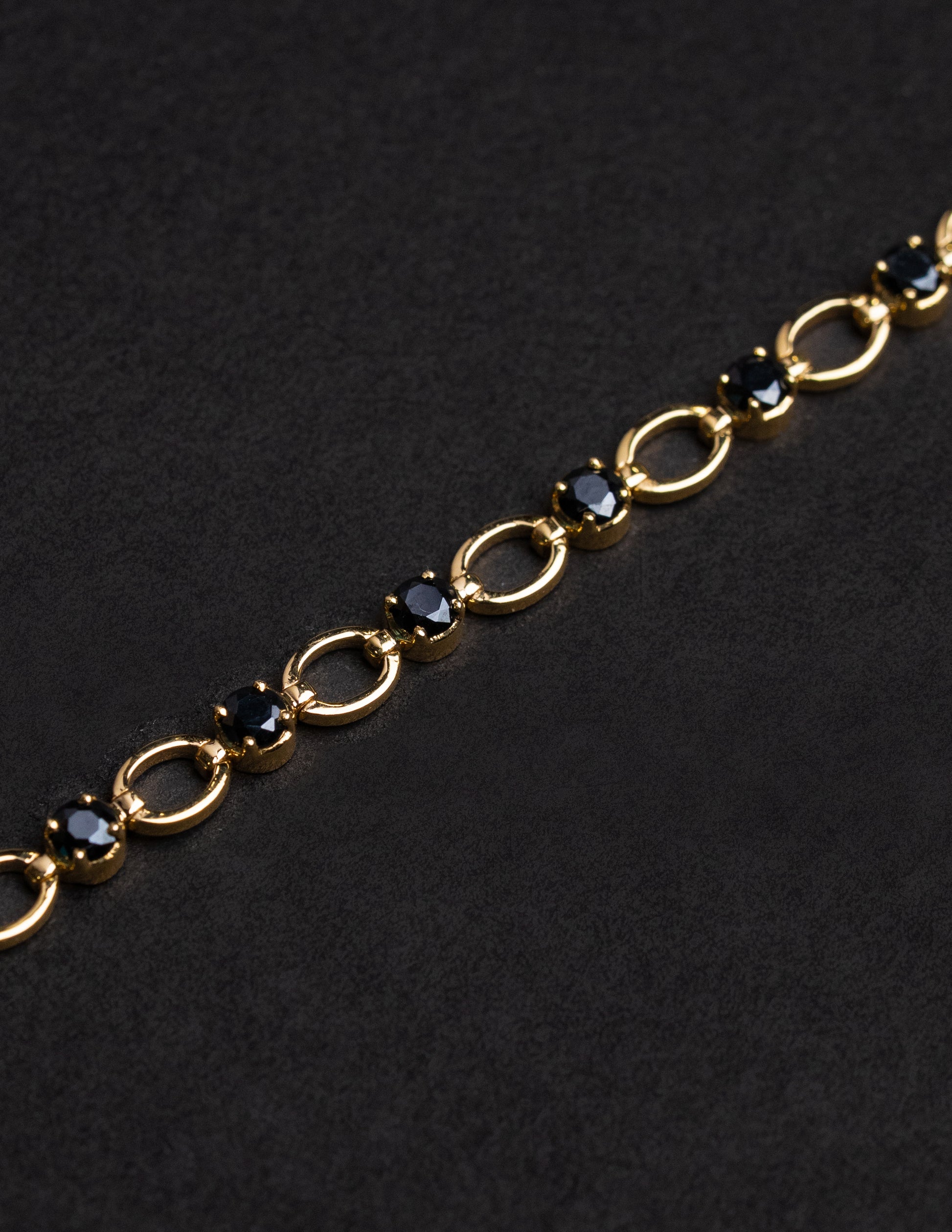 Sleek gold, shadowed dots. Minimal texture . A subtle standout, perfect worn solo or stacked. Made is 18k yellow gold and black Onyx