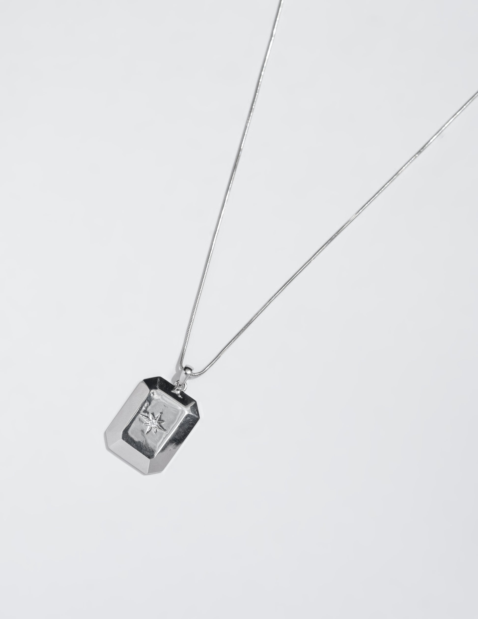 Beveled edges frame a centered star detail, dimensional and elevated, crafted in 18K white gold.