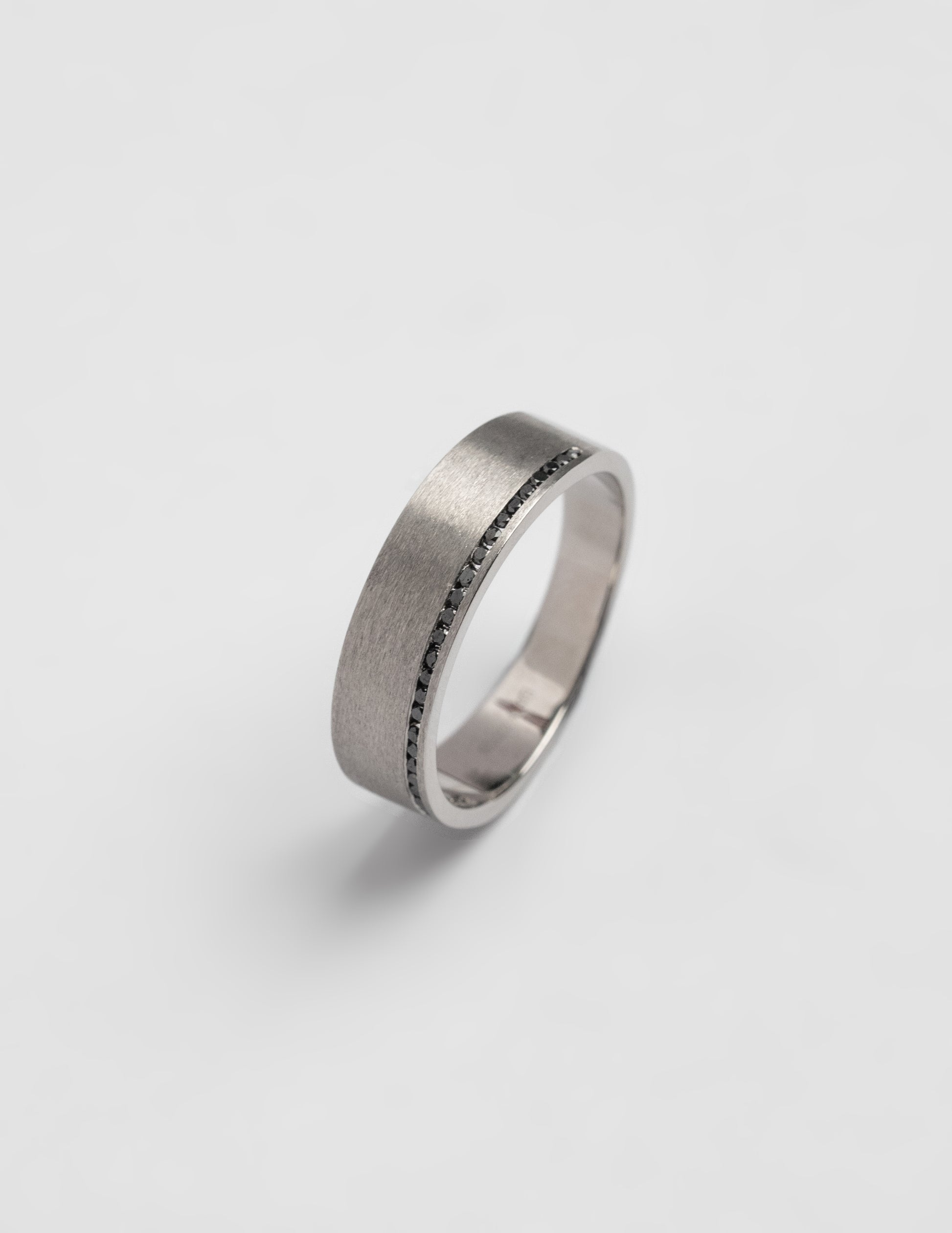 Black diamonds set in seamless channel, bold yet refined, crafted in Pure platinum.