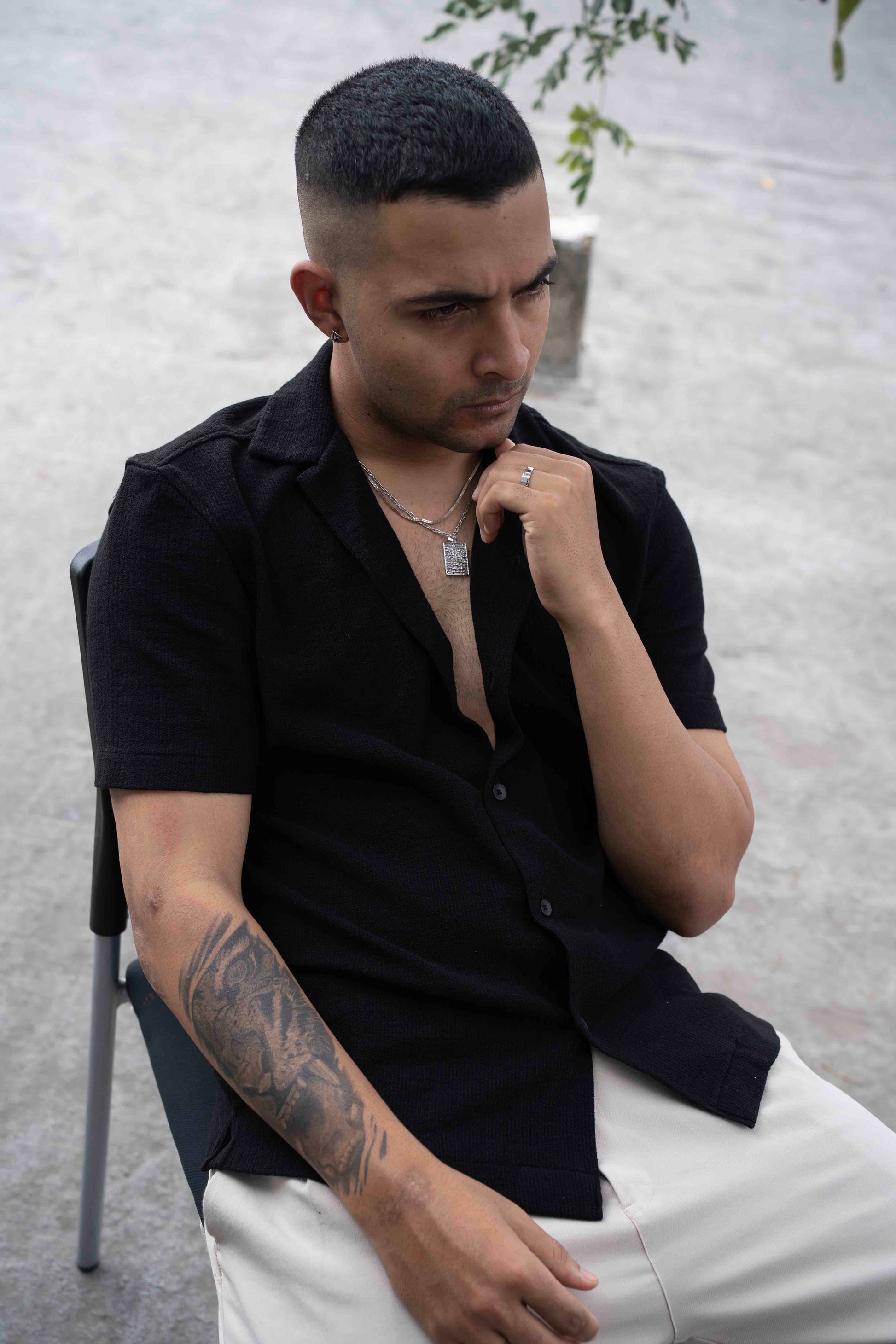 Raw textured surface meets refined edges, tactile and elemental, crafted in 18k white gold.